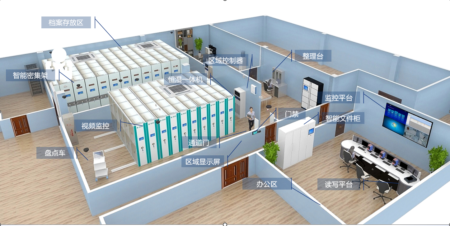 在互聯(lián)方面,云涌科技充分運用物聯(lián)網(wǎng)、大數(shù)據(jù)等技術(shù),并依托豐富的行業(yè)知識,在傳統(tǒng)檔案“十防”要求的基礎(chǔ)上,集成智能環(huán)境控制、智慧檔案管理,智慧安防、RFID射頻管理等系統(tǒng),打造了智慧檔案一體化管控平臺,打破信息孤島,無論是不同部門之間,還是上下級單位之間,檔案資源都能實現(xiàn)互聯(lián)互通。